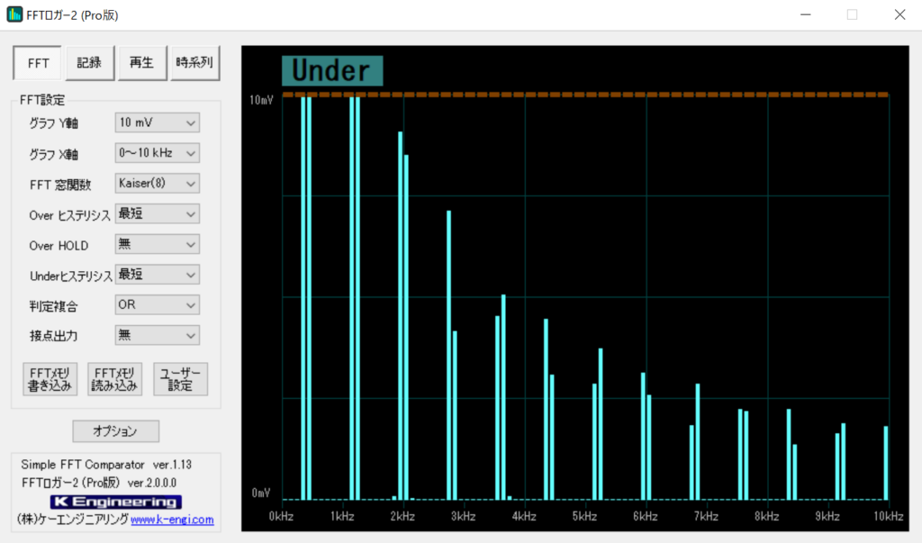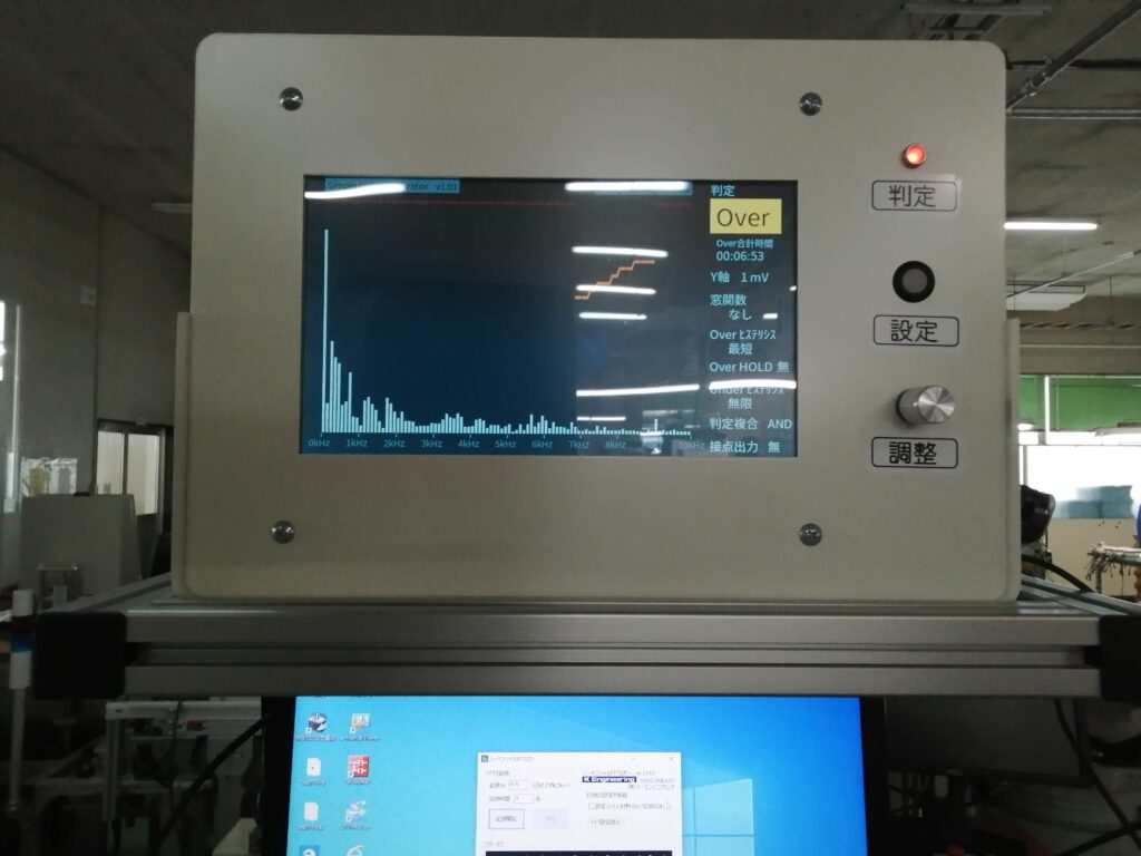 弊社のシンプルFFTコンパレータと、特注のソフトウエアの組み合わせにより、モーターの良否判定システムの自動化と計測データのロギングシステムを製作しました。